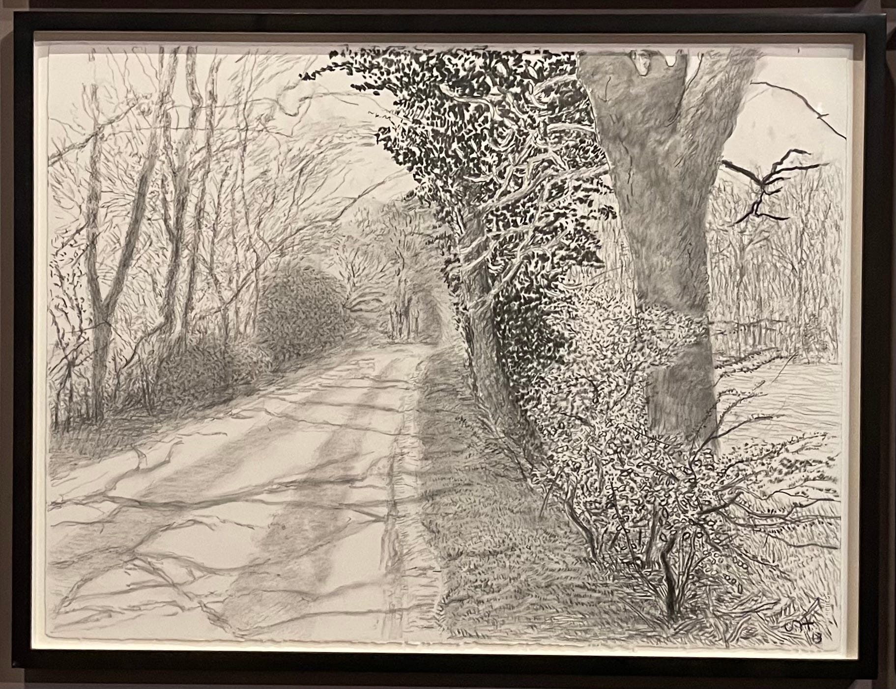 Hockney’s drawings of Yorkshire and Normandy in spring are among his greatest works. Drawing is a moment of emergence, the appearance of life, buds and blossom on bare branches, sunlight filtering onto warming ground. Drawing is the hope of continuity. Drawing is life itself.